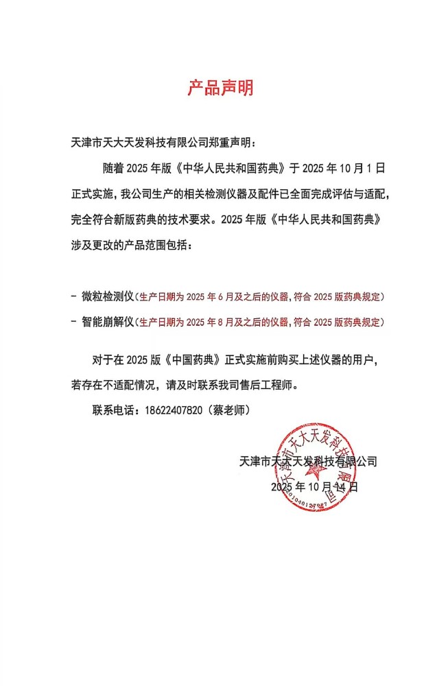 | 尊敬的各界朋友們: 歡迎您進(jìn)入天津市天大天發(fā)科技有限公司的網(wǎng)站進(jìn)行瀏覽,首先感謝各界朋友多年來對天大天發(fā)藥品檢測儀器和分析儀器的關(guān)心與支持! 天津市天大天發(fā)科技有限公司是通過ISO9001質(zhì)量管理體系認(rèn)證、ISO14001環(huán)境管理體系的認(rèn)證的高新技術(shù)企業(yè),是專業(yè)的藥檢儀器和分析儀器的制造廠商。 我們的產(chǎn)品包括藥品溶出儀系列、微粒檢測儀系列、內(nèi)毒素檢查儀系列等40余種產(chǎn)品,主要產(chǎn)品覆蓋了全國所有省區(qū),部分產(chǎn)品已進(jìn)入海外市場。公司在藥檢領(lǐng)域樹立了良好的品牌形象,贏得了廣大用戶的贊譽(yù)。 公司將更好地適應(yīng)瞬息萬變的市場,增強(qiáng)企業(yè)的核心競爭力。抓住全球經(jīng)濟(jì)飛速發(fā)展的歷史性機(jī)遇,以創(chuàng)新精神進(jìn)行新的創(chuàng)業(yè)。以高起點、高速度、高效率創(chuàng)造出中國藥品檢測儀器和分析儀器領(lǐng)域中的品牌形象,立足中國,走向國際。 我們熱切希望您成為天大天發(fā)科技有限公司的合作伙伴! |